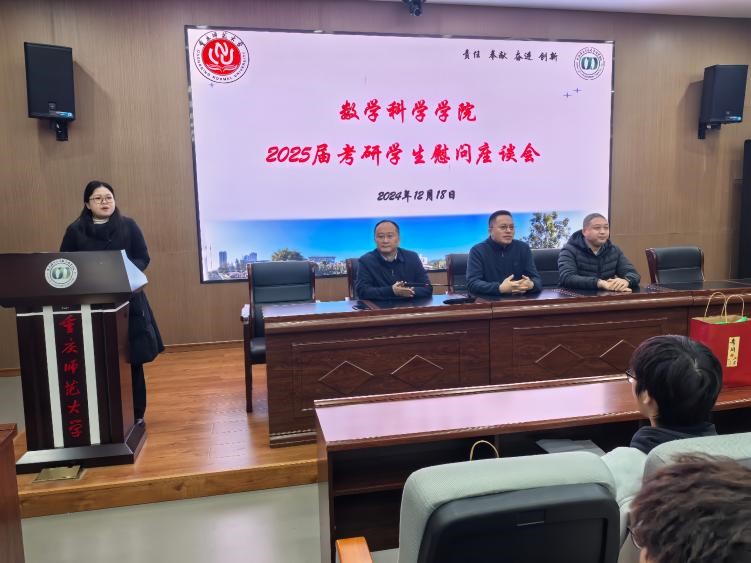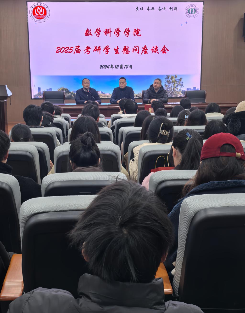 考研的征程已然进入最后的百米冲刺阶段,为激励考研学子全力以赴、坚持到底,跑赢考研这场“马拉松”,PA视讯官网于2024年12月18日上午在汇贤楼122开展考研慰问活动,为即将踏上考场的学子们送去关怀与鼓励,学院党委书记杨江水、院长赵克全、党委副书记袁小于、毕业年级辅导员以及2025届考研同学参加活动。