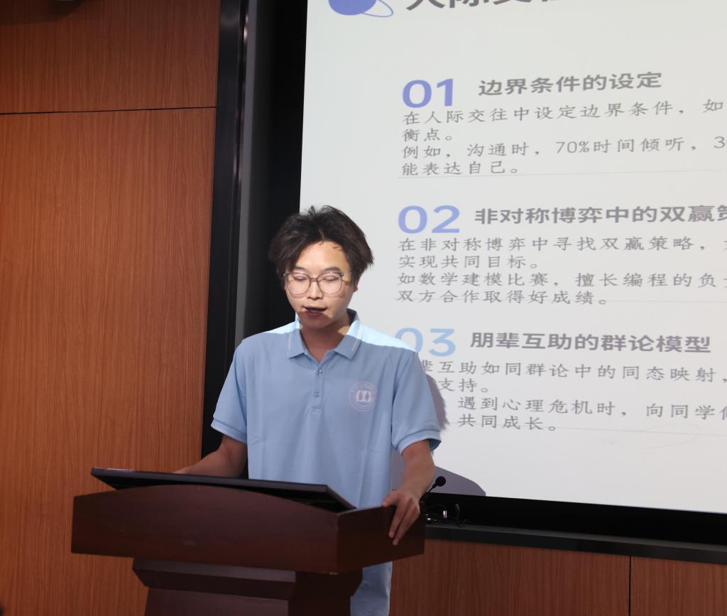 《心理函数论:用数学思维构建心理韧性》引入了极具学院特色的数学理论和模型,建立了心灵坐标和情绪方程,化抽象为具体,帮助大学生更好地构建心理韧性;《敏感不是缺陷,是善良者的天赋》从高敏人格的定义到高敏人格的形成原因,再到如何接纳高敏人格并发挥其优势,帮助高敏人群更好的接纳自我;《挣脱焦虑,拥抱自我》展现了人际交往的底层逻辑,通过生动有趣的情景表演,打破沟通壁垒,反映大学生常见焦虑情景并给出相应建议。