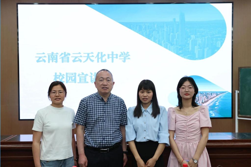 活动中,贺善兵副校长结合自身丰富的教育管理经验,为在场学生提出职业发展建议。他强调,大学生应树立远大理想、做好职业规划、广泛阅读、学会生活与社交,并针对教师的成长路径,详细阐述了应具备的核心能力与提升方向,包括扎实学科知识、提升教学技能、注重教育理念、提升综合能力等方面。随后,贺善兵副校长从办学理念、校园文化、发展历程、教学成果等多方面,全面介绍了云天化中学的办学特色与优势。