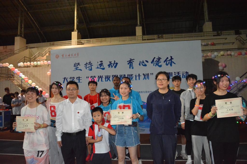 最终,青春洋溢的数院学子迎着夏日的晚风以第三名的成绩冲过终点,获得团体二等奖的优异成绩。此次活动作为大学生“荧光夜跑赋能计划”组成部分,面向全校同学弘扬运动精神,释放内心压力,促进心理健康发展。