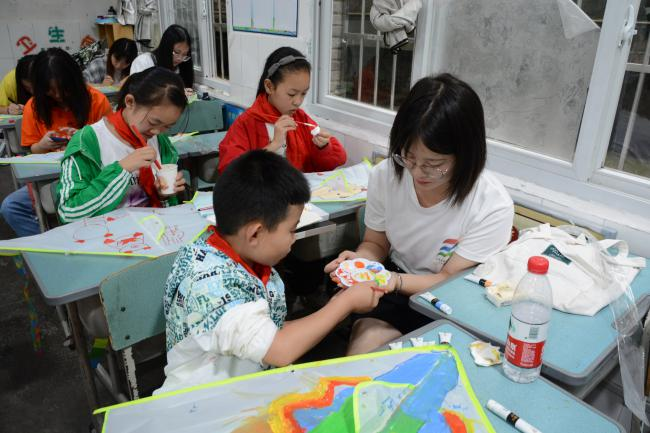 接下来进行的活动是手绘风筝,志愿者们为同学们分发了提前准备好的风筝和绘画工具,每位同学都极具想象力,在大哥哥大姐姐们的帮助下,创作出了属于自己独特的风筝。同学们的音乐细胞也令人羡慕,在歌唱教学中展现得淋漓尽致,每教一首歌,大家总能在最短的时间里学会。