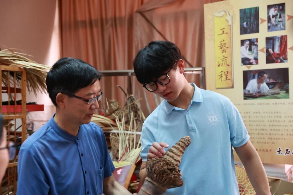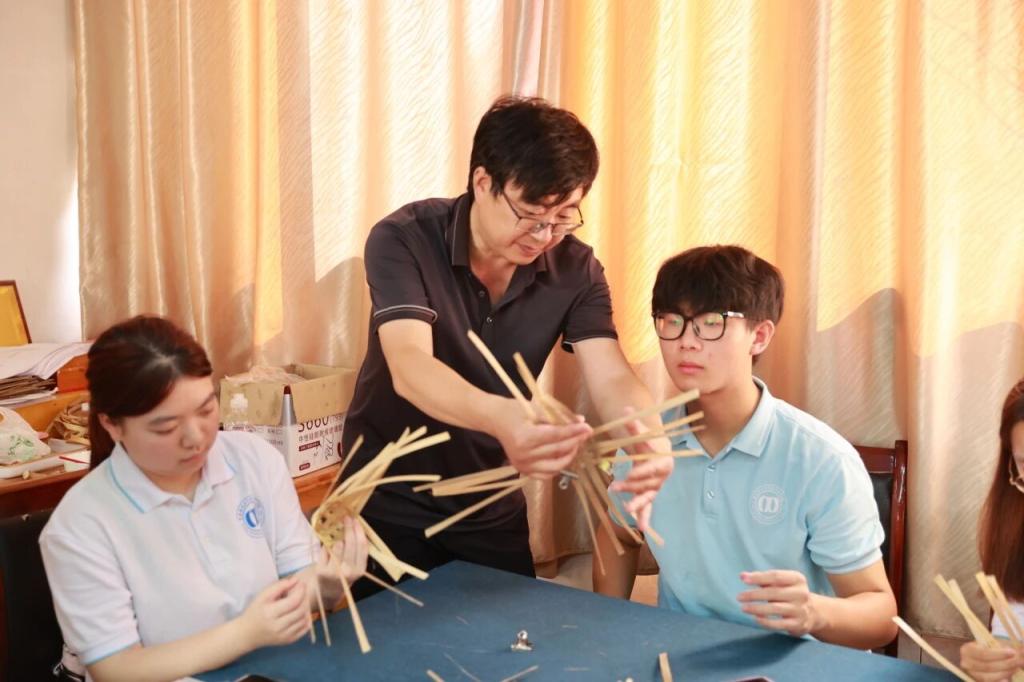 随后,同学们在匠人们的指导下,尝试完成简易竹编作品。