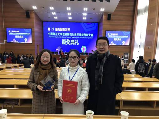 在仲秀英、李明振等指导教师的悉心指导下,李承桃同学勤奋刻苦的磨练自身教学技能。最终,她凭借扎实的专业知识、过硬的教学技能、稳定的临场发挥,力压群雄,一举斩获数学组一等奖。这充分展现了我院师范生人才培养的成效,更是填补了我校此奖项一等奖的空白。