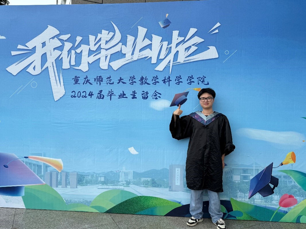 在学习上,他踏实认真,专业成绩排名前1%,获得国家奖学金,一等综合奖学金7次;在全国大学生统计建模大赛中获得国家二等奖;在全国大学生数学建模竞赛中获得重庆市二等奖;参与1项国家级大学生创新创业训练计划项目并顺利结项;以第一作者发表学术论文2篇,获得“重庆市三好学生”、“重庆市优秀毕业生”、“优秀共青团员”、“科技学术创新先进个人”等荣誉称号。