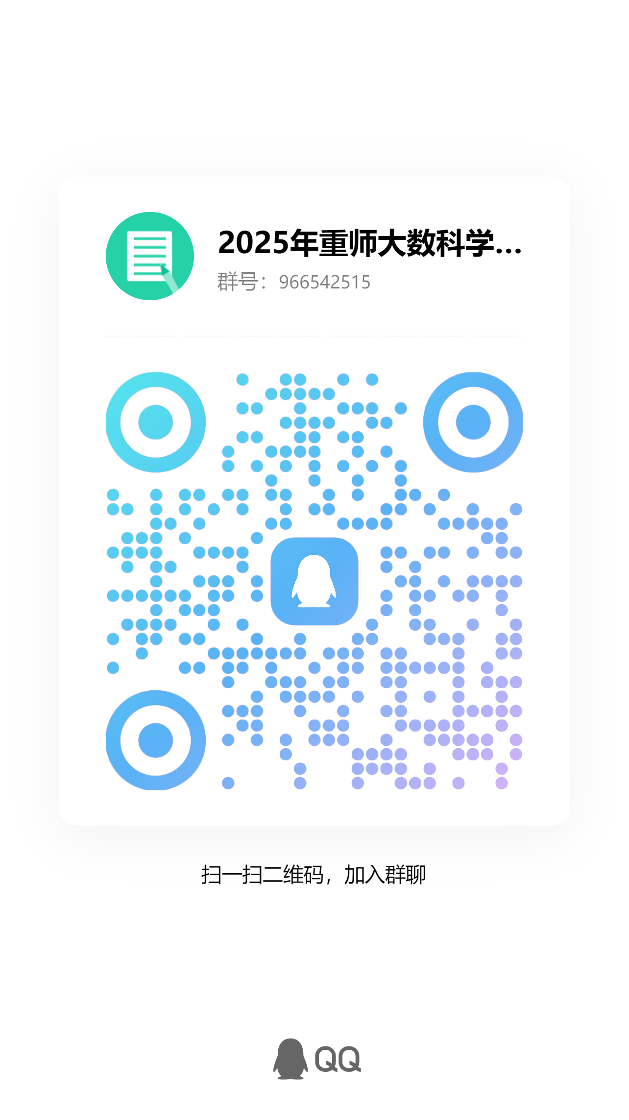 招生咨询QQ群:2025年重庆师大PA视讯官网招生咨询群,群号:966542515。可通过群名、群号和扫描下面的二维码加群。