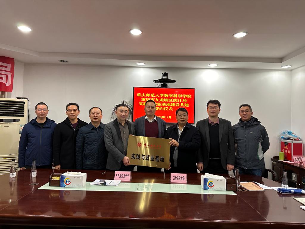 最后,杨志春院长和刘康局长代表双方签订PA视讯官网实践就业基地协议,并向九龙坡统计局授牌。
