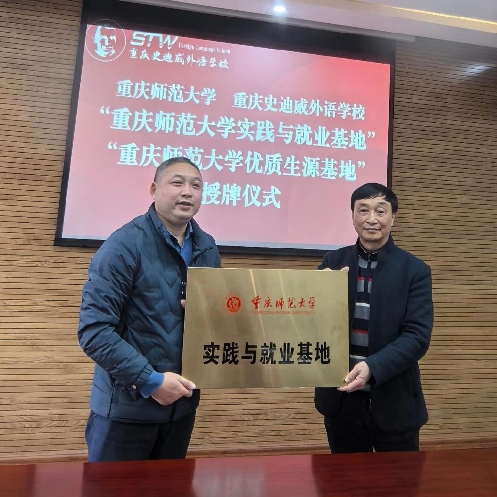 双方就大学生实习实训、毕业生招聘要求、新教师待遇、新教师职业发展、学校招生和高考情况、签约违约处理等毕业生关心的问题进行了讨论交流。曾庆模校长和袁小于副书记代表双方签署了“实践与就业基地”协议书,并举行授牌仪式。最后,在曾校长的带领下大家参观了史迪威外国语学校。