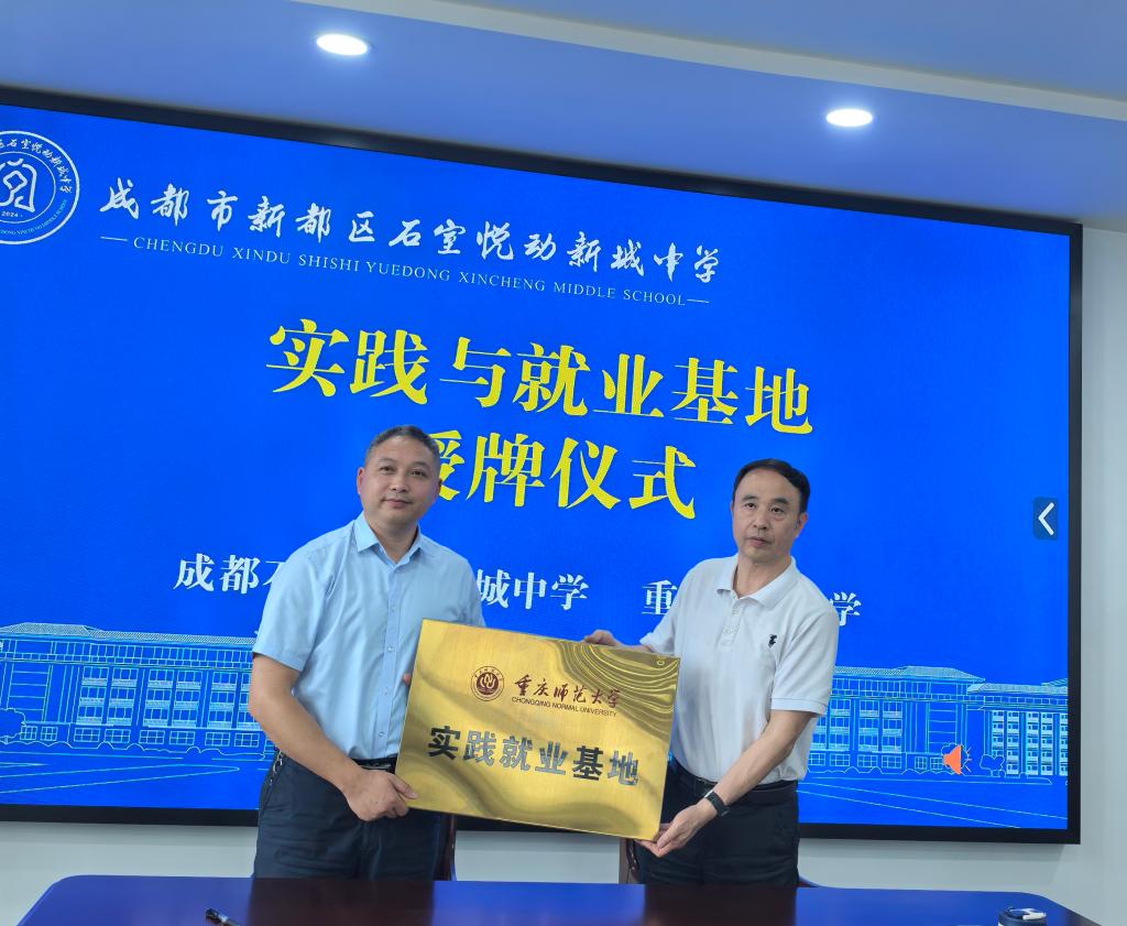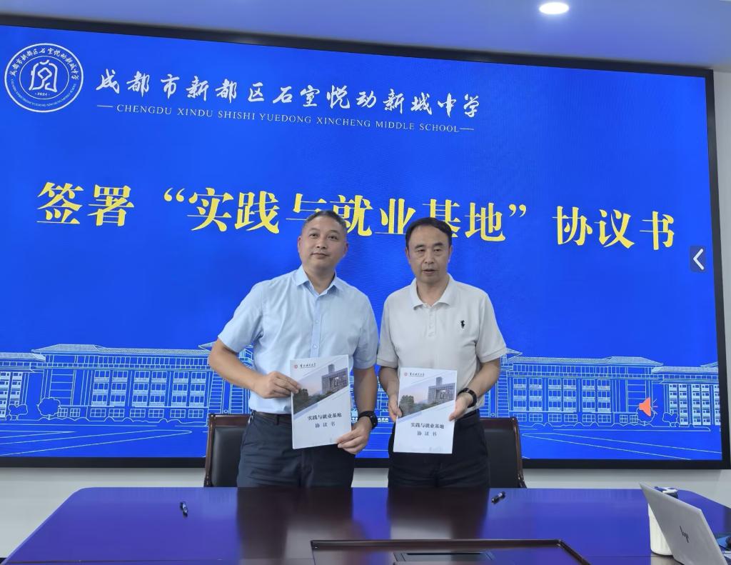 双方就大学生实习实训、毕业生招聘要求、新教师职业发展、新教师待遇和学校招生情况等问题进行了交流讨论,也现场解答了毕业生代表提出的疑问。徐锐校长和袁小于副书记代表双方签署了“实践与就业基地”协议书,并举行授牌仪式。最后,在徐校长的带领下大家参观了石室悦动新城中学并进行合影留念。