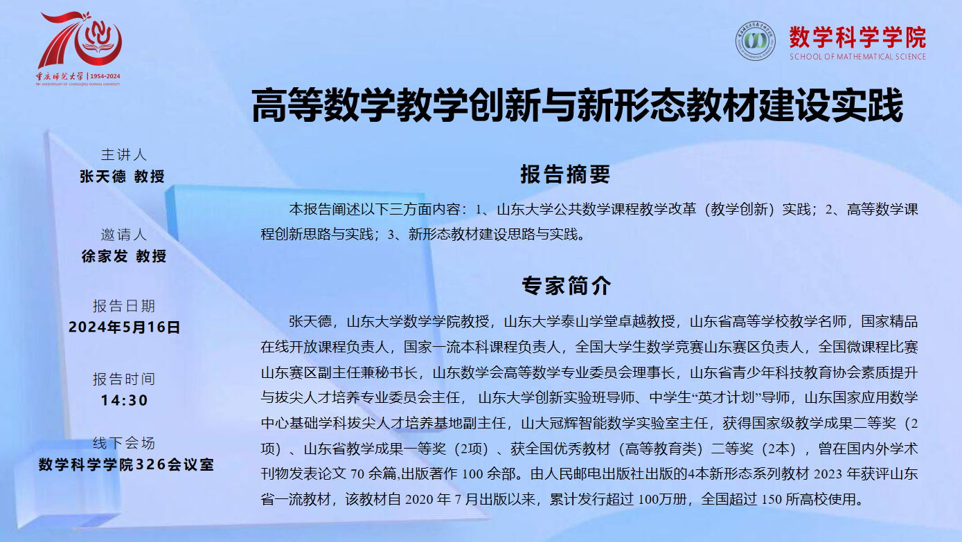 学术报告——张天德教授(山东大学)