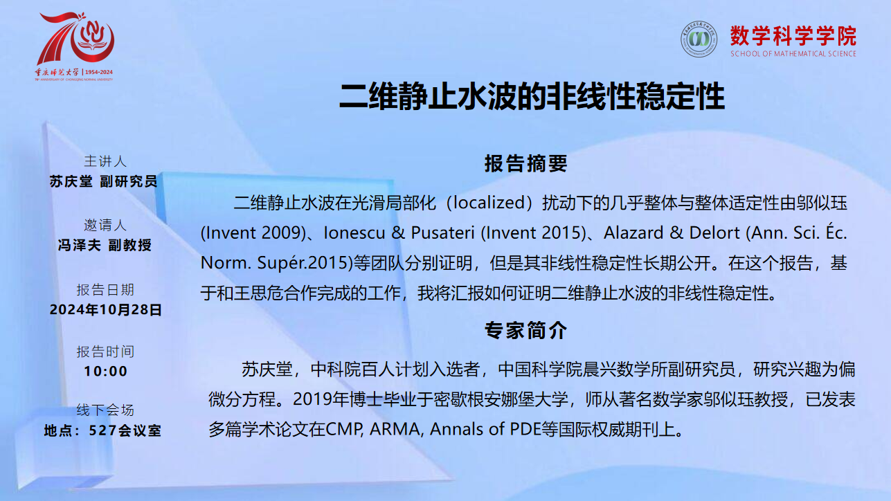 学术报告——苏庆堂副研究员(中国科学院晨兴数学所)