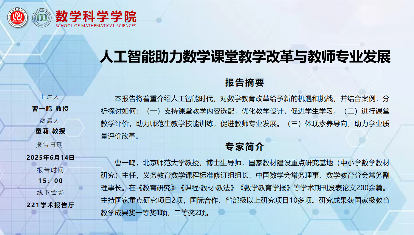 学术报告——曹一鸣教授(北京师范大学)