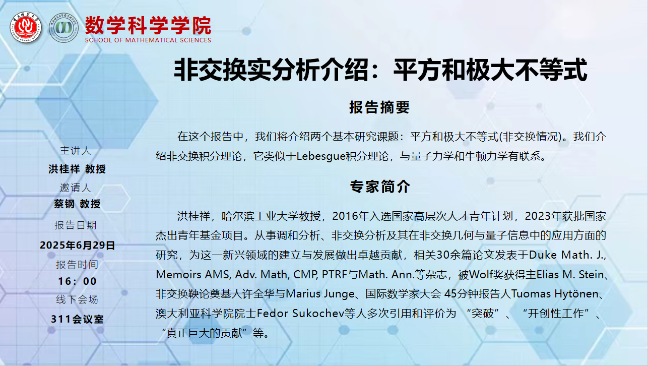 学术报告——洪桂祥教授(哈尔滨工业大学)