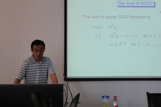 线性互补问题近些年来受到许多专家学者的注意,杨教授给大家介绍了在二阶锥中线性变换的全局解的唯一性问题。针对一般的线性互补问题,给出了相关理论,特别是对杨教授及其合作者的方法,给出一些说明。杨教授的报告生动易懂,且又蕴含着深刻的道理,给大家以深刻的启迪。